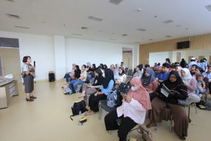 Sebagai narasumber utama, dr. Titin, dokter spesialis anak RS Panti Rapih, menyampaikan pentingnya pemahaman orang tua terhadap tanda-tanda keterlambatan perkembangan.