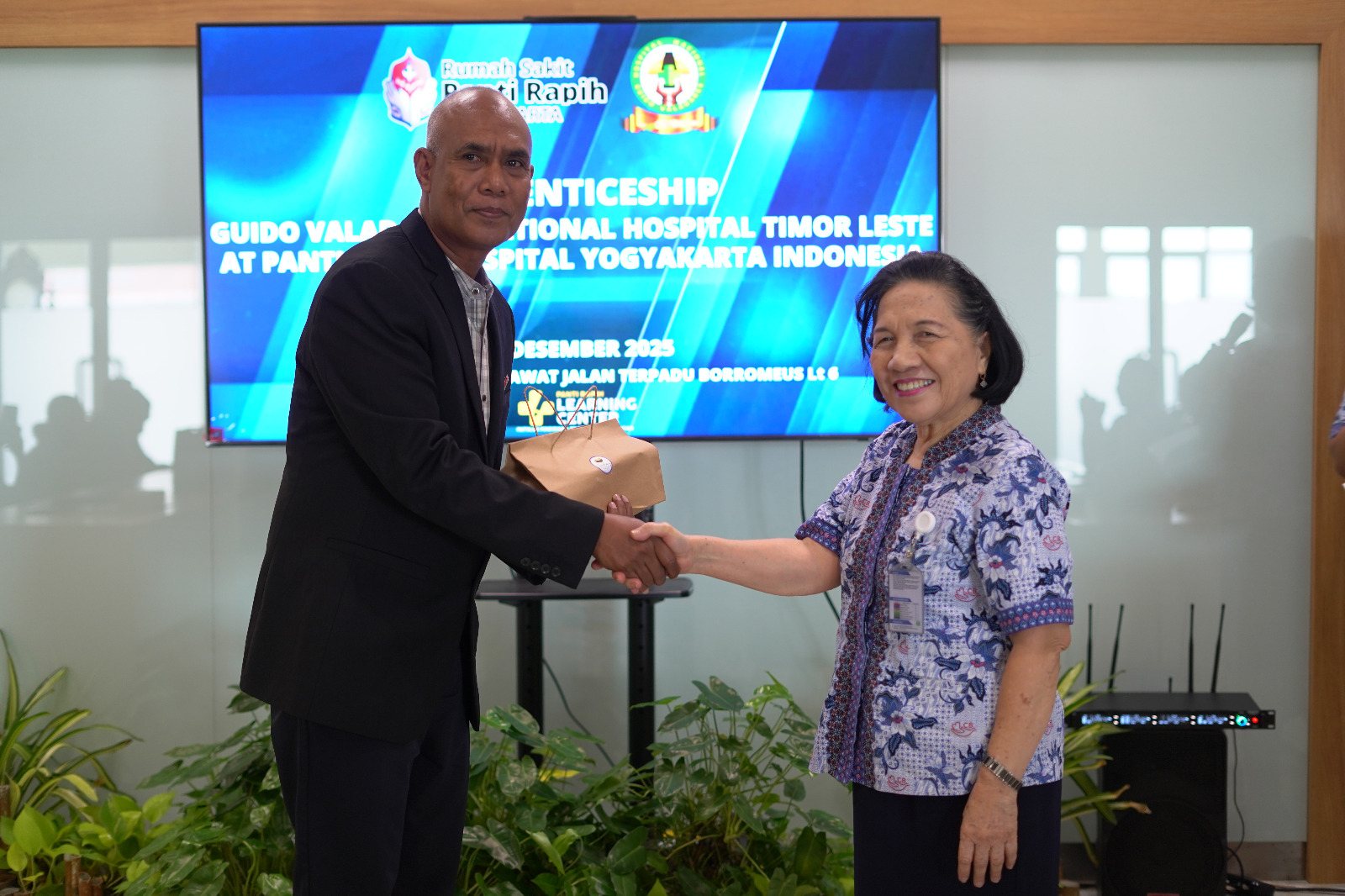 YOGYAKARTA, 19 Desember 2025 – Dalam upaya meningkatkan kualitas pelayanan non-medis khususnya di sektor keamanan, Guido Valadares National Hospital (HNGV) Timor Leste melakukan kunjungan studi banding ke RS Panti Rapih Yogyakarta. Kunjungan yang berfokus pada pelayanan sekuriti (security services) ini dilaksanakan pada Kamis (19/12/2025) bertempat di Ruang Auditorium Kecil, Gedung Borromeus Instalasi Rawat Jalan Terpadu (IRJT) Lantai 6.
